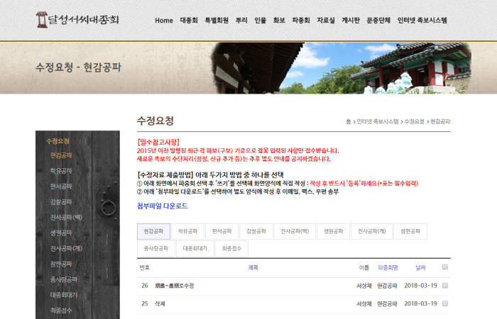 족보 수정/승인 시스템 구축, 디자인, 오류 수정 등